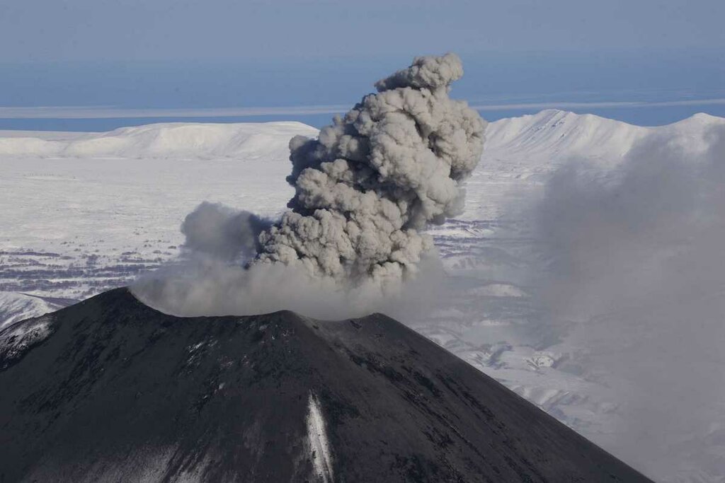 Команда экспедиции работает в ночи, ища жизнь внутри огненного кратера.