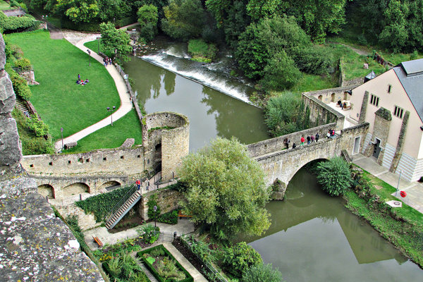Символом государства считается также мост Адольфа, перекинутый над лесистым ущельем и соединяющий Нижний и Верхний город. Рядом с ним разбиты красивые сады.