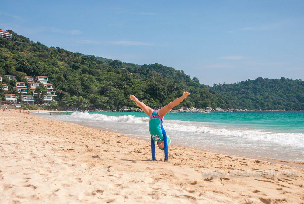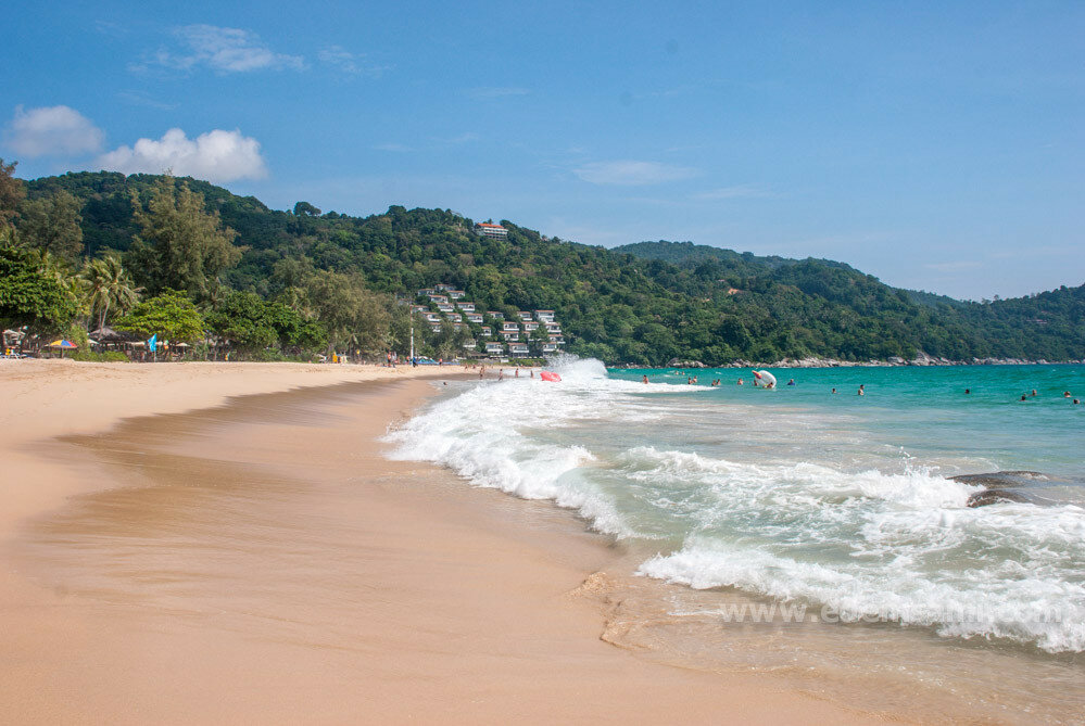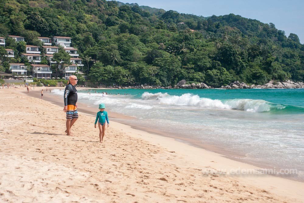 Вода роскошного бирюзового оттенка, тоже безупречно чистая. Она холоднее, чем на прочих пляжах Пхукета – это хорошо, поскольку в ней можно хоть как-то спастись от тайской жары.