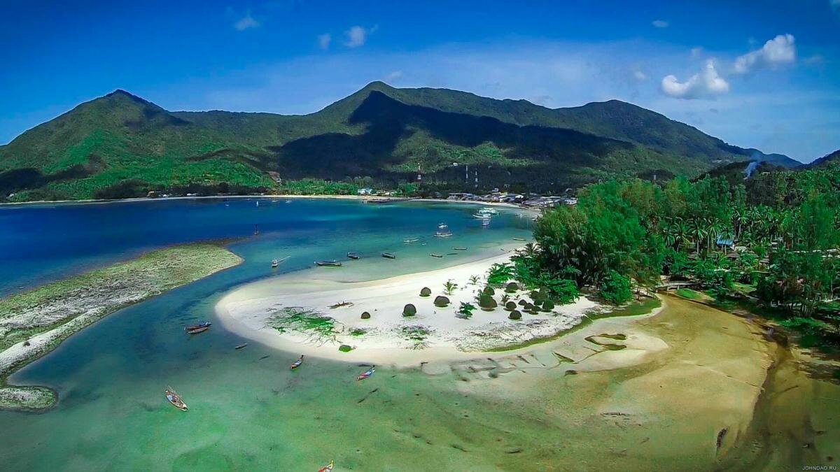 Эти двойные соединенные брови из сверкающего песка цвета шампанского простираются почти на 2 мили (3 км) на юго-восточной оконечности острова.